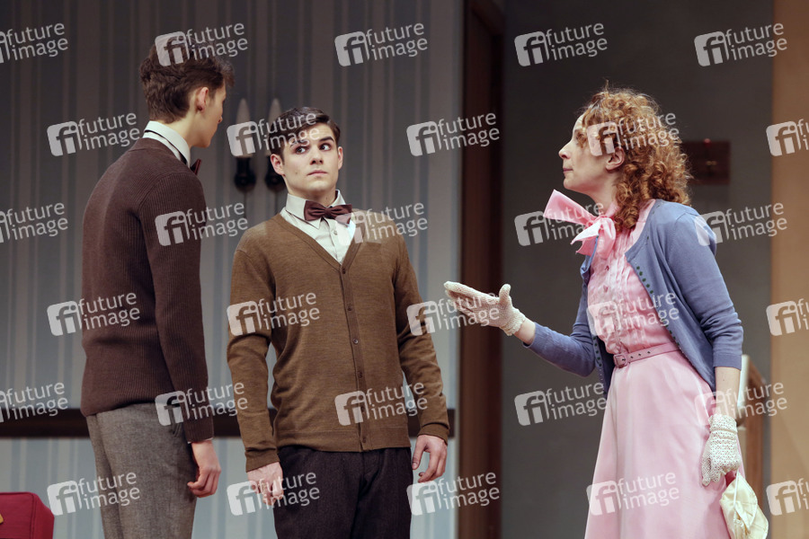 Sandro Lohmann, Lucas Reiber und Chiara Schoras bei der Fotoprobe 'Eine ganz normale Familie' im Theater am Kurfuerstendamm. Berlin, 06.03.2013