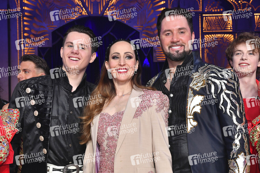 Alexis Lacey, Jana Mandana Lacey-Krone und Martin Lacey jr. bei der Premiere des Circus Krone Tourneeprogramms 'Farbenspiel - Gold Edition' im Circus Krone Zelt auf der Theresienwiese. München, 10.04.2025