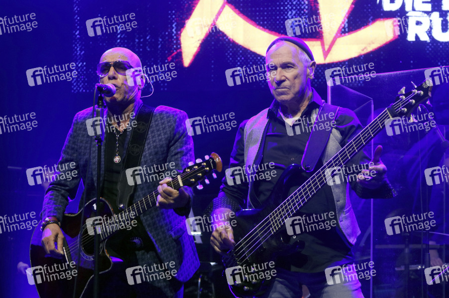 Toni Krahl und Georgi Gogow von City beim Pressetermin anlässlich ihrer Abschiedstour '50 Jahre City - Die letzte Runde' im Kesselhaus der Kulturbrauerei. Berlin, 14.09.2021