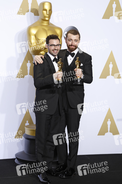 Jimmy Napes und Sam Smith (Bester Filmsong 'Writing’s on the Wall' aus 'James Bond 007: Spectre') im Presseraum der Oscar Verleihung 2016 / 88th Academy Awards im Loews Hollywood Hotel. Los Angeles, 28.02.2016