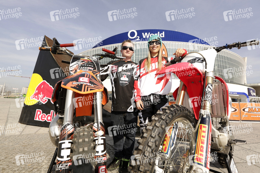 Hannes Ackermann und Emma McFerran beim Fototermin 'Night of the Jumps' vor der O2 World. Berlin, 06.03.2013