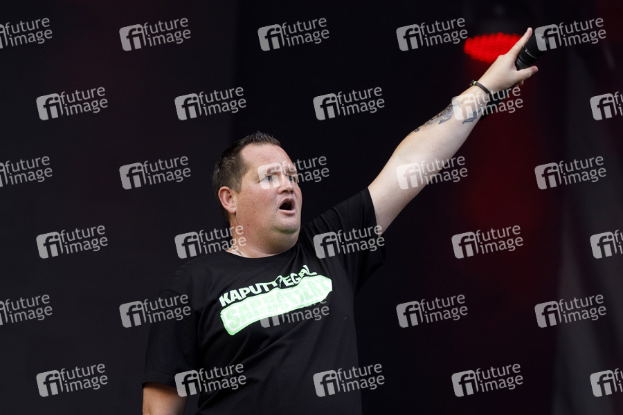 Sabbotage bei seinem Auftritt beim Konzert von Mia Julia im Kulturgarten in der Bonner Rheinaue. Das Bonn Live Kulturgarten Open Air Festival 2020 ist Europas erstes Open Air Festival unter Corona-Auflagen wegen der Covid-19 Pandemie. Bonn, 08.08.2020