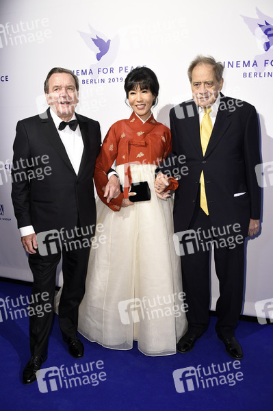 Gerhard Schröder mit Ehefrau Kim So-yeon und Arthur Cohn bei der Cinema For Peace Gala 2019 im WECC - Westhafen Event & Convention Center. Berlin, 11.02.2019