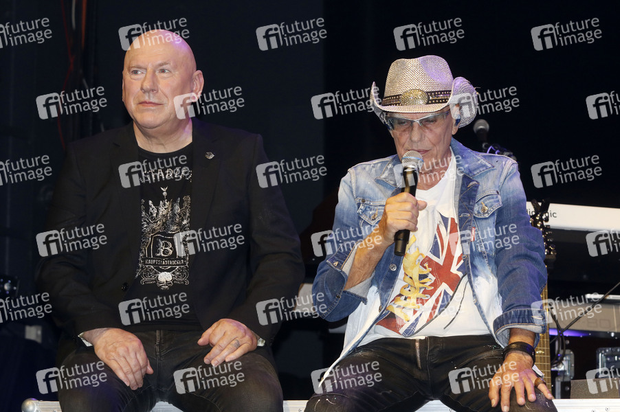 Manfred Hennig und Fritz Puppel von City beim Pressetermin anlässlich ihrer Abschiedstour '50 Jahre City - Die letzte Runde' im Kesselhaus der Kulturbrauerei. Berlin, 14.09.2021