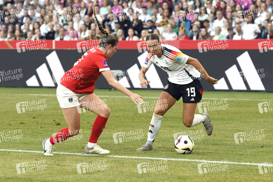 Claudia Wenger und Klara Bühl beim Frauenfußball EM-Qualifikationsspiel Deutschland gegen Österreich (4:0) in der Heinz-von-Heiden-Arena. Hannover, 16.07.2024
