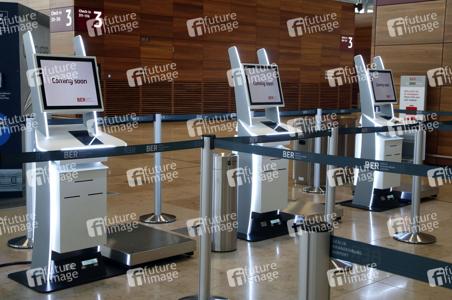 Ceck-in Service Station für Self-Service. Der Flughafen Berlin-Brandenburg Willy Brandt ist 14 Tage nach seiner Eröffnung und dem Corona-Teil-Lockdown nicht ausgelastet. Durch die Corona-Pandemie ist der Flugverkehr weltweit dramatisch eingebrochen. Schönefeld, 14.11.2020