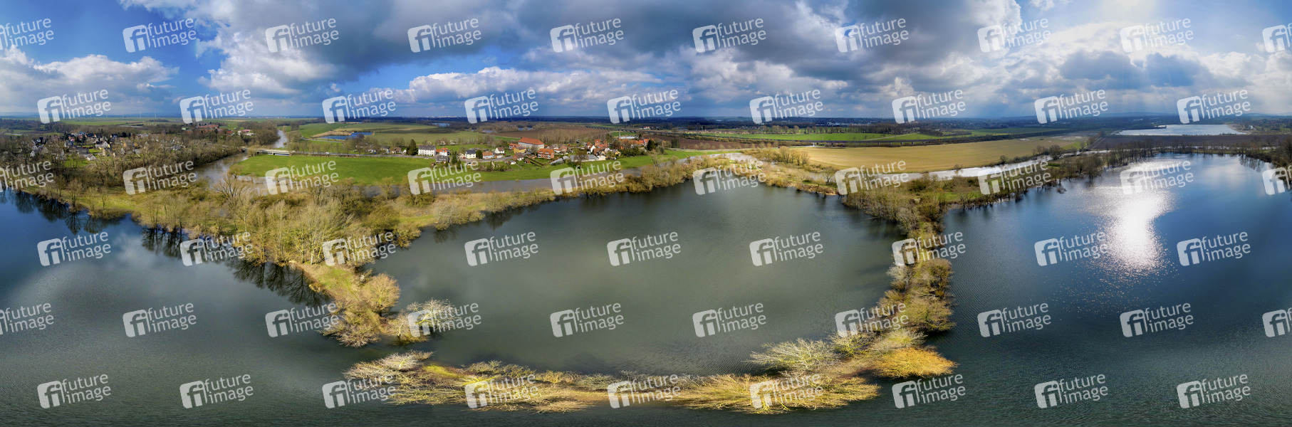 Luftaufnahme, Fluss, Hochwasser, Wetter, Überschwemmung, Hochwasserschutz, Waserstand, Pegelstand, Panorama