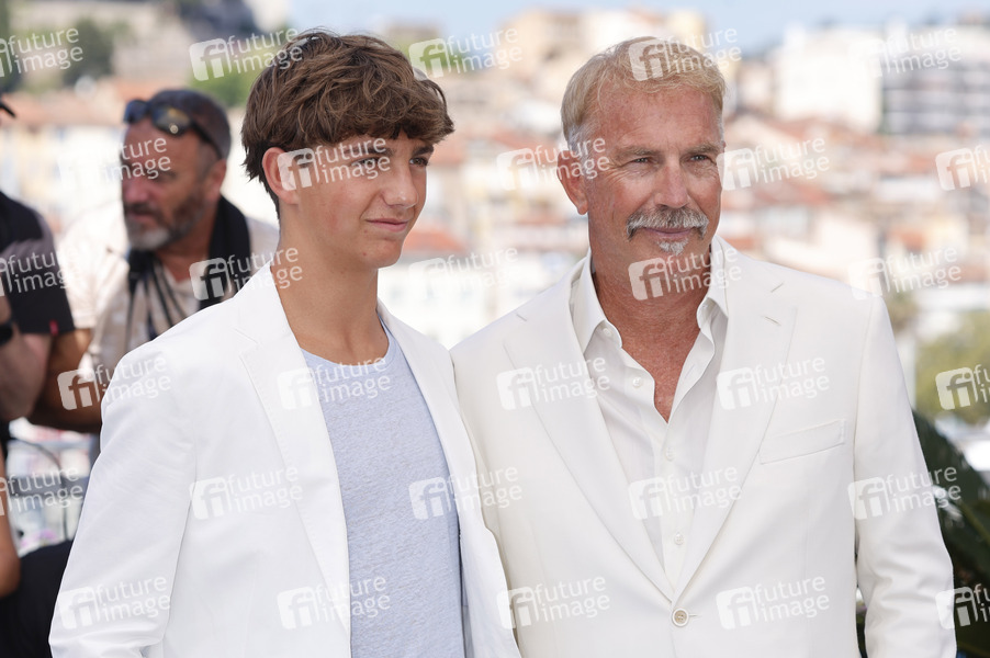 Hayes Costner mit Vater Kevin Costner beim Photocall zum Kinofilm 'Horizon: An American Saga' auf dem Festival de Cannes 2024 / 77. Internationale Filmfestspiele von Cannes am Palais des Festivals. Cannes, 19.05.2024