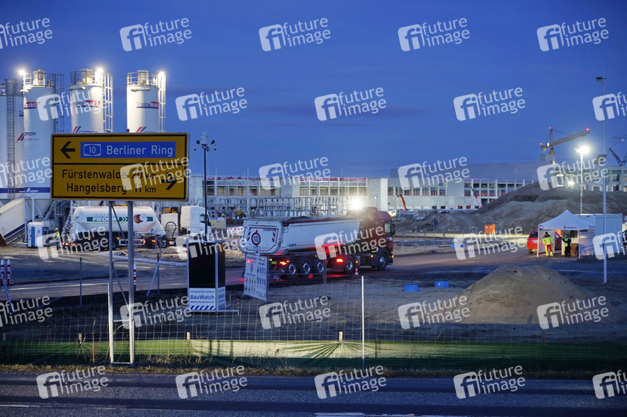 Elektroauto, Elektrofahrzeuge, PKW, Auto, Model Y, Model 3, Großfabrik, Automobilhersteller, Autobauer, Elektromobilität, umweltfreundlich, vorläufige Genehmigung, Batteriefabrik, Großprojekt, Investition, Baugenehmigung, Vorab-Genehmigung, E-Auto-Fabrik, Umwelt, Klimaschutz, Baustelle, Bauen, Baubranche, Bau-Branche, Bauarbeiten, Großbaustelle, Kran, Kräne, Baustelle, Wirtschaft, Autoproduktion