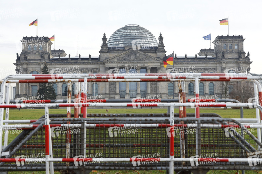 Absperrgitter stehen vor dem Bundestag. Ab Mittwoch gilt nach Willen der Bundesregierung der ein harter Lockdown. Geschäfte, Schulen und Kitas werden schließen. Für Weihnachten und Silvester wurden strenge Regeln verkündet. (Symbolbild, Themenbild) Berlin, 14.12.202