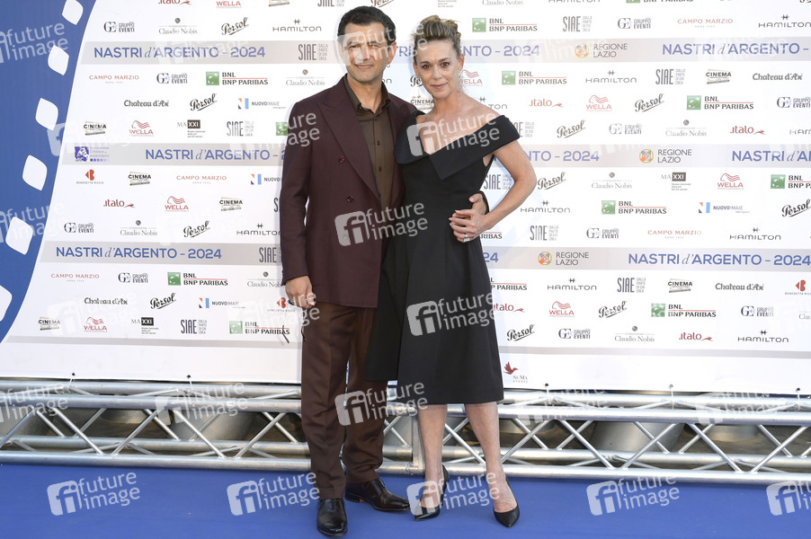 Vinicio Marchioni mit Ehefrau Milena Mancini bei der Verleihung der Nastri d'Argento 2024 im Museo nazionale delle arti del XXI secolo. Rom, 27.06.2024