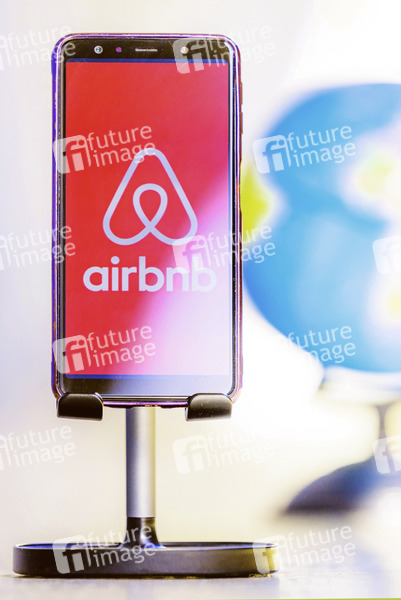 Buchung und Vermietung von Unterkünften, Unterkunft, Online-Marktplatzunternehmen, App, Business, Geschäft, Unternehmen, Appartment, Wohnung, Börse, Tourismus, Urlaub, Weltreise, Übernachtung, Wohnraum, Vermittler, Ferienwohnungen, Symbolbild, Symbolfoto