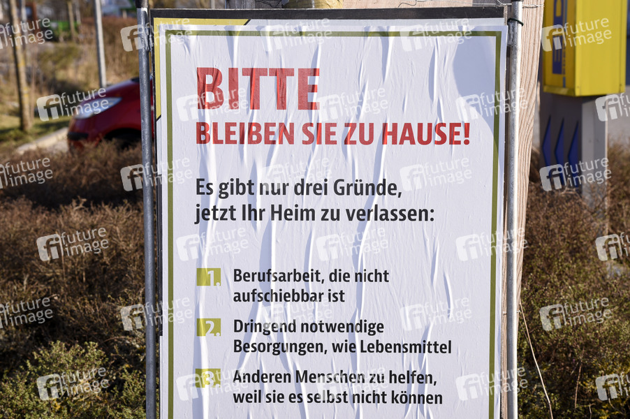 Hinweisschild vom Landkreis München - Ausgangsbeschränkungen und Maßnahmen der Bundesregierung zur Bekämpfung der Corona-Epidemie. München, 23.03.2020