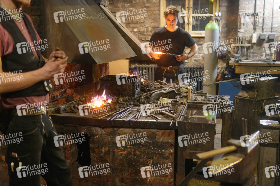 Rixdorfer Schmiede auf dem Alt-Rixdorfer Weihnachtsmarkt rund um den Neuköllner Richardplatz. Berlin, 08.12.2024
