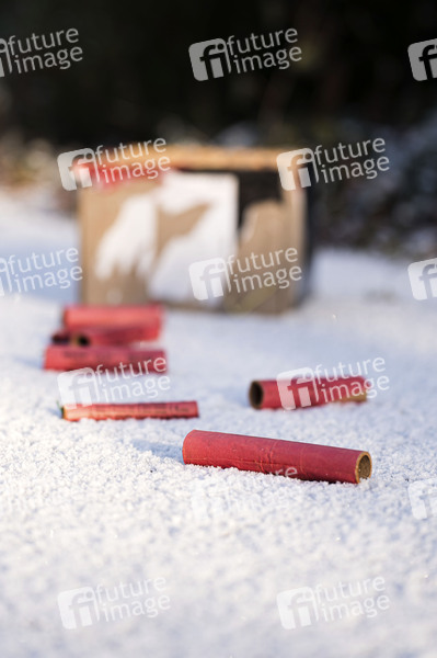 Feuerwerkskörper verursachen viel Müll in Form von Verpackungen, Kunststoffen, Holzstäben und chemischen Rückständen (Schwermetalle, Farbsalze), der gefährlich für Tiere ist und Böden/Gewässer belastet; abgebrannte Teile gehören in den Restmüll, Verpackungen (Pappe/Plastik) oft in die Papier- oder Gelbe Tonne, aber immer ausgekühlt entsorgen und ungenutztes Feuerwerk vor der Entsorgung wässern. Die Entsorgung ist oft aufwendig und verursacht durch Schadstoffe eine erhebliche Umweltverschmutzung, weshalb Umweltschützer zum Verzicht aufrufen. (Themenfoto, Symbolfoto )