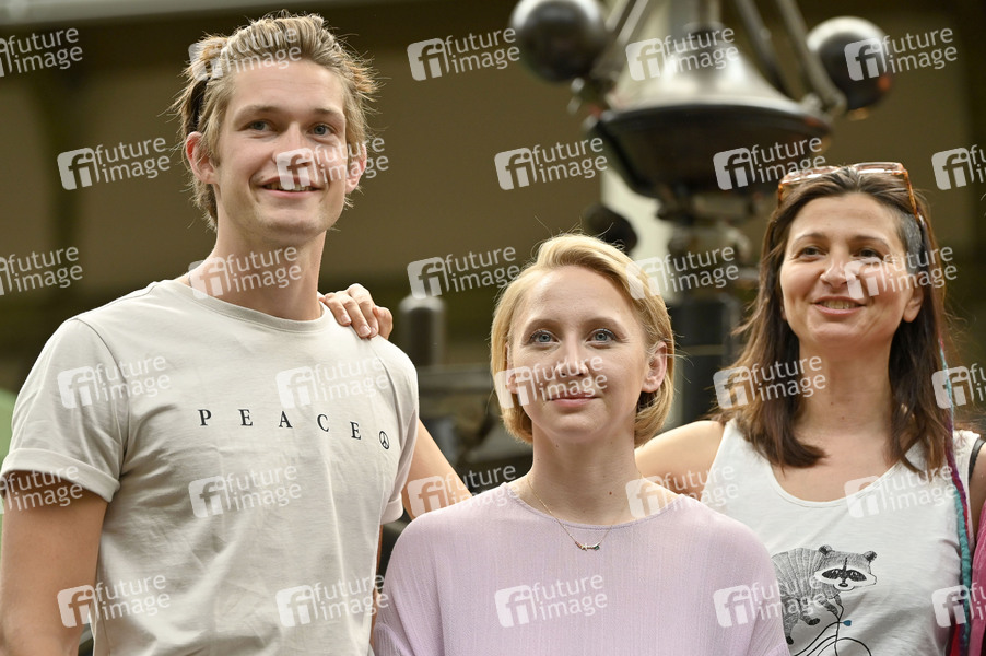 Damian Hardung, Anna Maria Mühe und Mira Thiel beim Fototermin am Set der 2. Staffel der ARD TV-Serie 'Unsere wunderbaren Jahre' im Monforts Quartier. Mönchengladbach, 14.06.2022