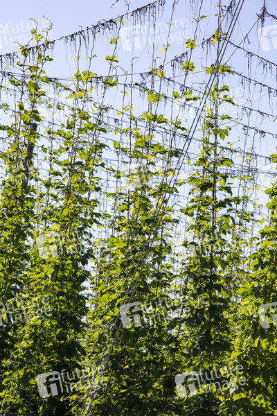 Hopfenstauden am Hopfenpfad beim Fototermin am Hopfengut No20. Tettnang, 07.07.2020