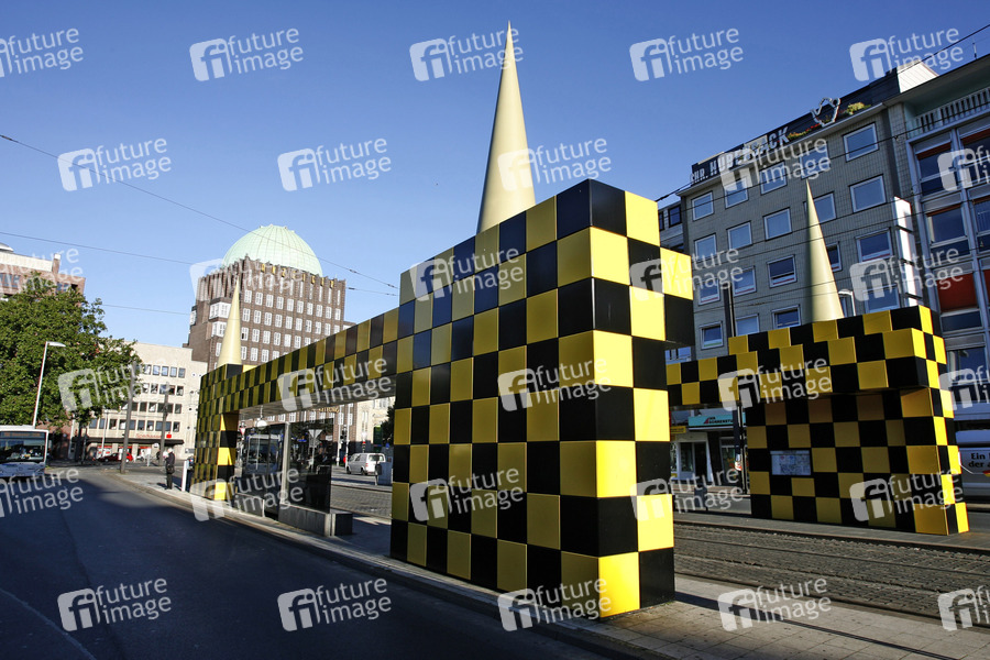 im Zusammenhang einer Kampagne der Üstra und der Stadt Hannover im Jahre 1994 von Allessandro Mendini gestaltet, Kunst, Haltestelle, Straßenbahn, Anzeiger-Hochhaus