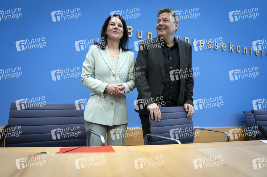 Annalena Baerbock und Robert Habeck bei der Bundespressekonferenz Bündnis 90/Die Grünen - Zu den Bundestagswahlen im Haus der Bundespressekonferenz. Berlin, 24.02.2025