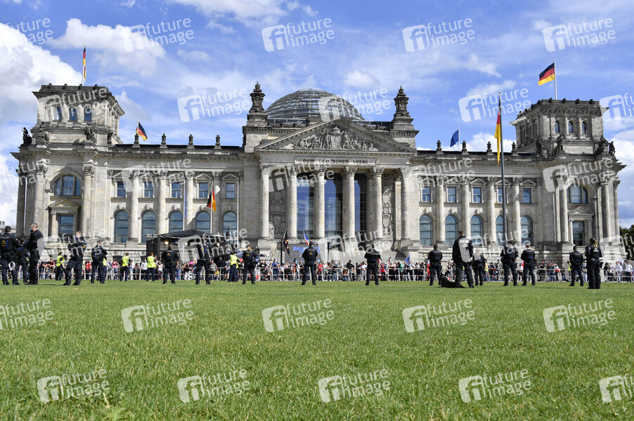 Tausende Menschen demonstrieren gegen die Coronavirus-Auflagen. Die selbsternannten Reichsbürger versammeln sich vor dem Reichstagsgebäude. Berlin, 29.08.2020.