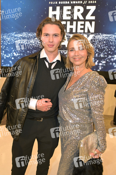 Tina Ruland mit Sohn Jahvis Rahmoune bei der 19. Verleihung des Felix Burda Award 2024 im Hotel Adlon Kempinski. Berlin, 21.04.2024