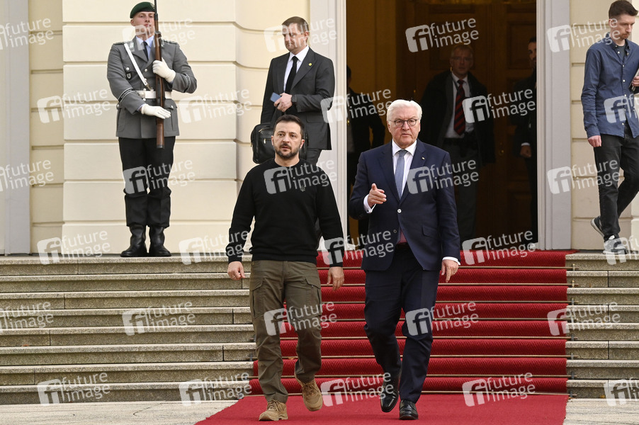 Wolodymyr Selenskyj und Frank-Walter Steinmeier beim Empfang des Präsidenten der Ukraine zum gemeinsamen Gespräch im Schloss Bellevue. Berlin, 11.10.2024