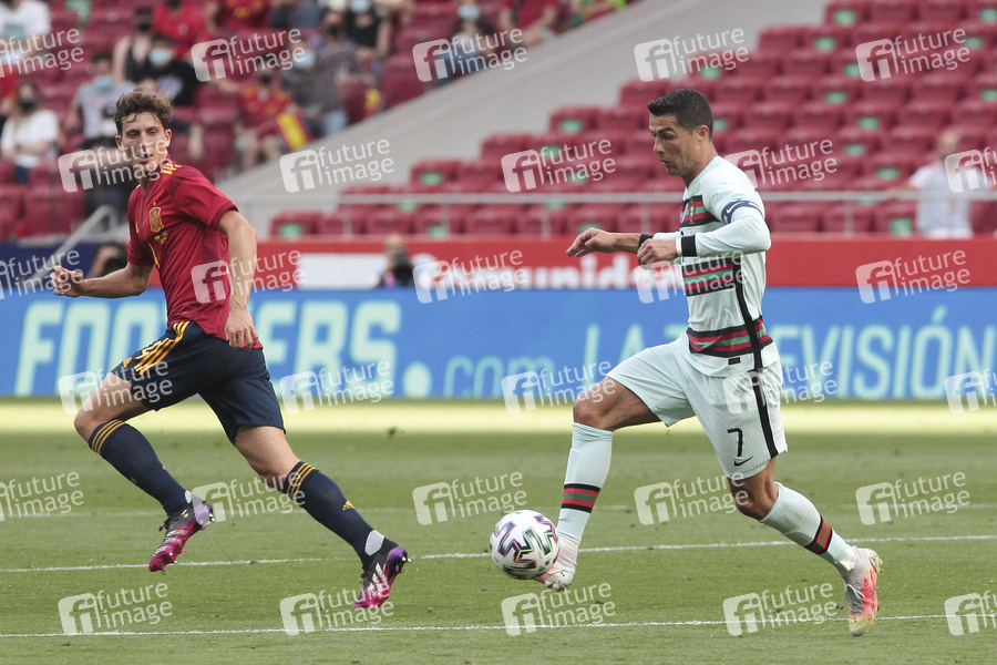 Pau Torres und Cristiano Ronaldo beim Freundschaftsspiel Spanien gegen Portugal (0::0) im Wanda Metropolitano Stadion. Madrid, 04.06.2021