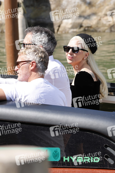 Joaquin Phoenix, Todd Phillips und Lady Gaga bei der Ankunft am Pier des Palazzo del Cinema auf der Biennale di Venezia 2024 / 81. Internationale Filmfestspiele von Venedig. Venedig, 04.09.2024