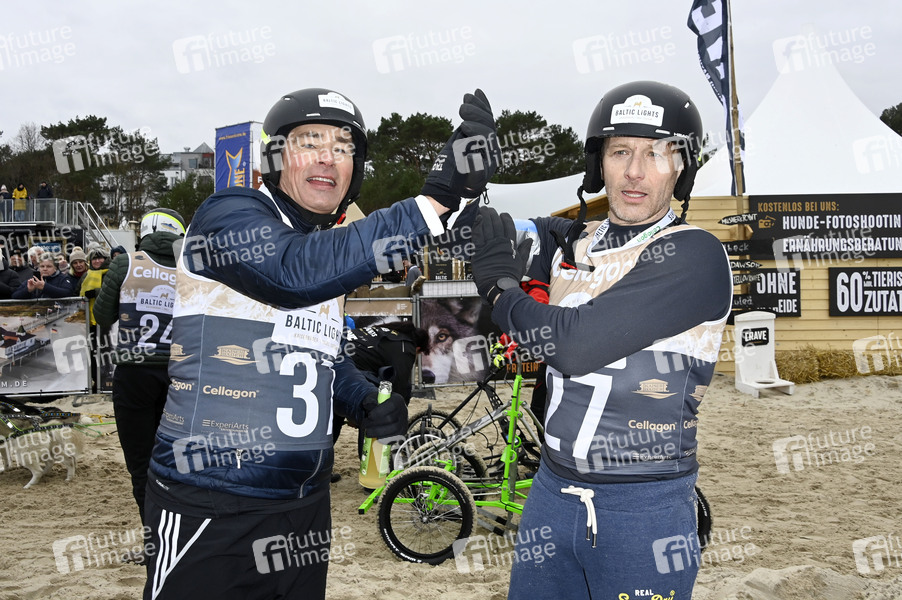 Jan Sosniok und Hendrik Duryn beim Baltic Lights 2022 Charity-Hunderennen zu Gunsten der Welthungerhilfe zwischen der Seebrücke Ahlbeck und der Seebrücke Heringsdorf. Heringsdorf, 05.03.2022