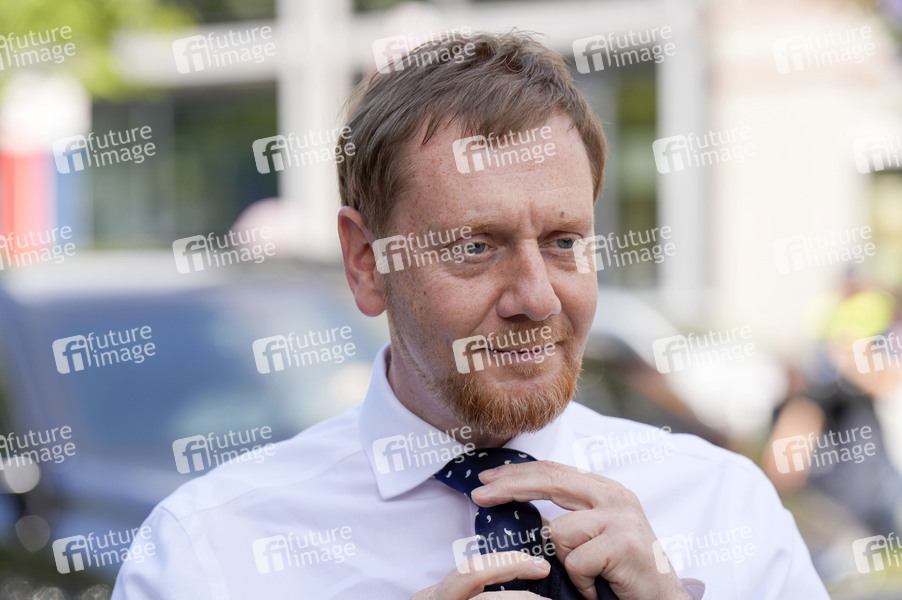 Michael Kretschmer bei der Besprechung der Regierungschefinnen und Regierungschefs der Länder bei der Ministerpräsidentenkonferenz in der Landesvertreung Hessen. Berlin, 20.06.2024