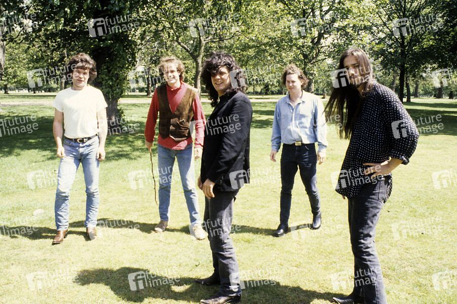 The Tragically Hip (Rob Baker, Gord Downie, Johnny Fay, Paul Langlois, Gord Sinclair) bei einerm exklusiven Photoshooting im Hyde Park. London, 13.06.1991