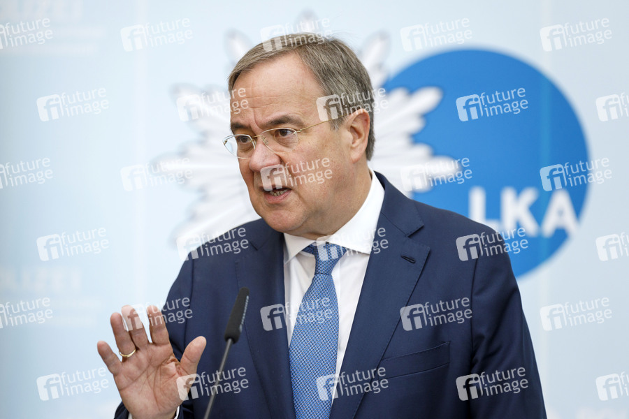 Ministerpräsident des Landes Nordrhein-Westfalen, NRW-Ministerpräsident, Politiker, CDU, Kanzlerkandidat, Pressekonferenz, Terror, Gefährder, Gefährdung, Synagoge, Antisemitismus, Innere Sicherheit, LKA, Gefährdungslage