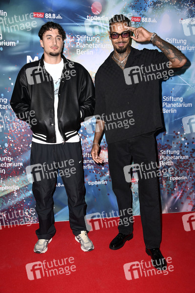 Germain Wolf mit Begleitung bei der Weltpremiere der 360° Fulldome-Show von Peter Schillings 'Major Tom: völlig losgelöst' im Zeiss-Großplanetarium. Berlin, 16.10.2025