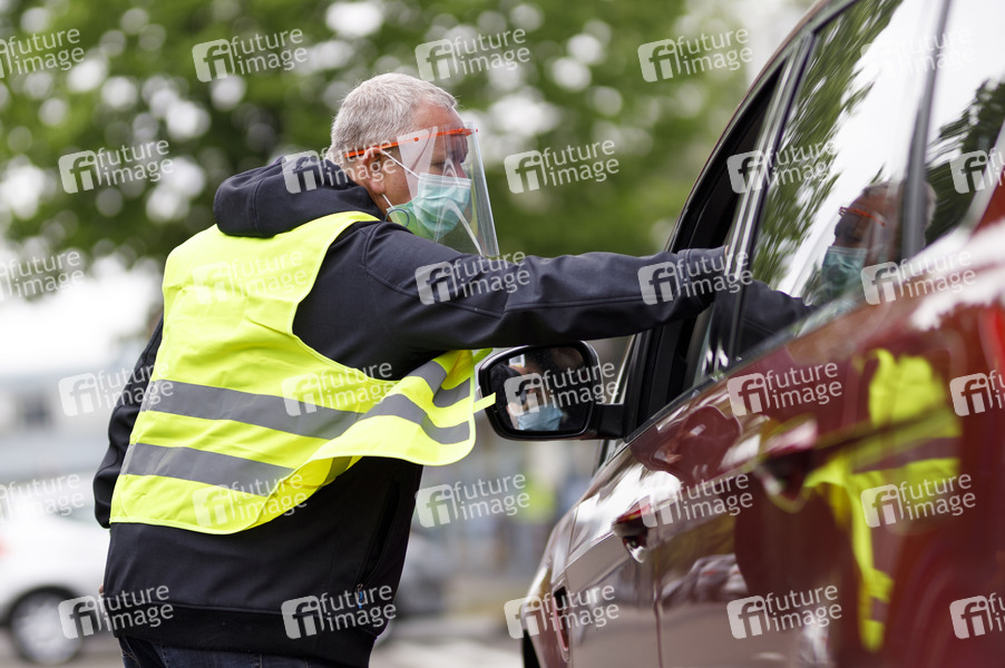 Temperaturkontrollen der Mitarbeiter und Besucher beim Besuch von Armin Laschet im Ford-Werk anlässlich der Wiederaufnahme der Produktion nach den Corona-Einschränkungen. Köln, 04.05.2020