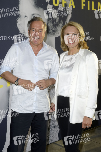 Nico Hofmann und Karin Schlautmann beim Eröffnungsempfang der UFA Filmnächte 2022 auf der Dachterrasse der Bertelsmann Repräsentanz. Berlin, 24.08.2022