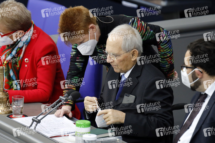 Petra Pau und Wolfgang Schäuble in der 208. Sitzung des Deutschen Bundestages im Reichstagsgebäude. Berlin, 10.02.2021