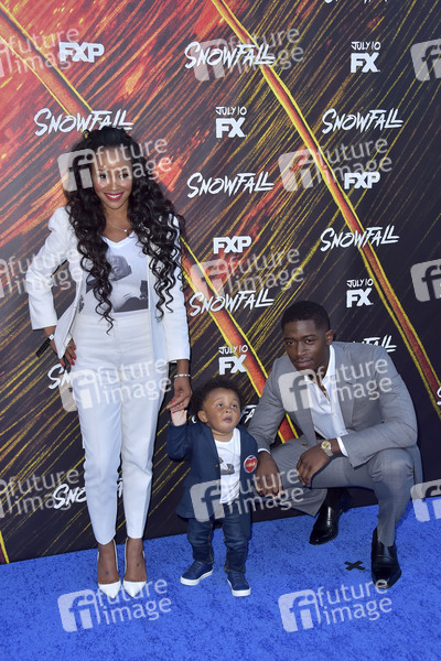 Damson Idris mit Partnerin und Sohn Seven John bei der Premiere der 3. Staffel der FX TV-Serie 'Snowfall' im Bovard Auditorium der USC. Los Angeles, 08.07.2019