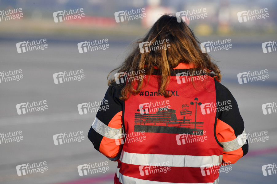 Mitarbeiter des Flughafens Tegel beim Abschied. Mit der Inbetriebnahme des Flughafens Berlin Brandenburg Willy Brandt (BER) wird der gesamte Luftverkehr der Hauptstadtregion an einem Standort konzentriert. Der Flughafen Tegel, kurz TXL, schließt am 8. November. 60 Jahre nach dem ersten Linienflug von Air France wird am 8. November ein Flugzeug der französischen Airline zum allerletzten Mal von dem Flughafen im Nordosten Berlins starten und Adieu sagen. Berlin, 08.11.2020