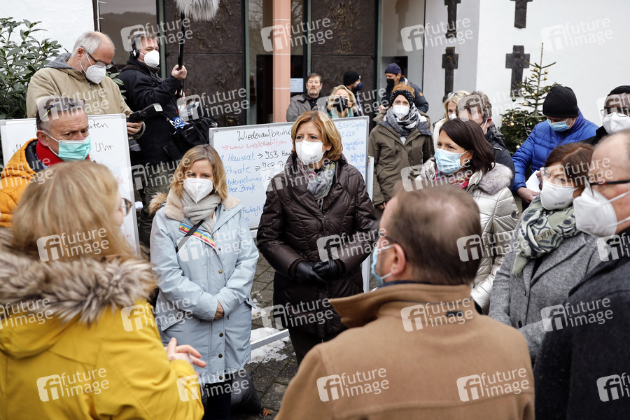 Katrin Eder, Malu Dreyer und Daniela Schmitt besuchen sechs Monate nach der Jahrhundertflut das Ahrtal, um Bestandsaufnahme in der Ortsgemeinde Schuld zu machen. Schuld, 12.01.2022