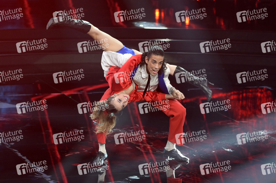 Tommaso Marini und Sophia Berto in der 2. Episode der Rai Tanzshow 'Ballando con le stelle 2024' im Auditorium Rai Foro Italico. Rom, 05.10.2024