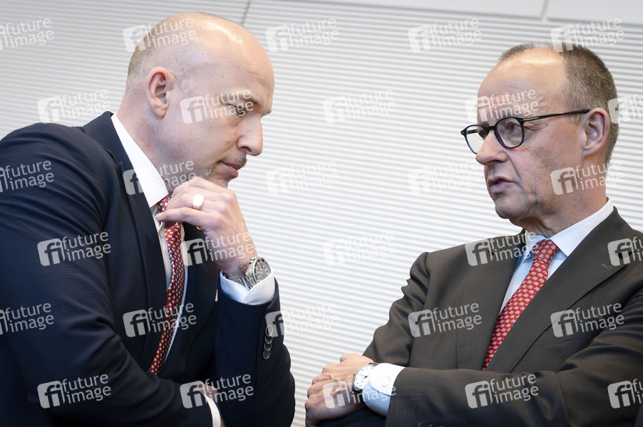 Alexander Hoffmann und Friedrich Merz in der Fraktionssitzung der CDU/CSU-Bundestagsfraktion im Reichstagsgebäude. Berlin, 17.03.2026