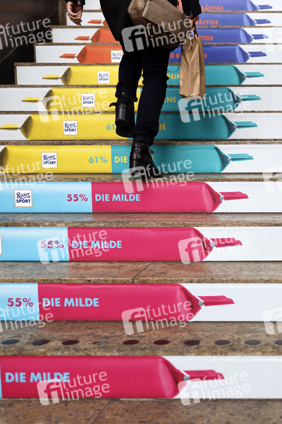 Treppe, Werbung, Urteil, Gericht, quadratisch, praktisch, gut, Ritter-Sport-Schokolade, Kakao, Cacao, Schoko, Vollmilch, Zartbitter, Herrenschokolade, schwarze Schokolade, weiße Schokolade, chocolate battle, geschützt, geschützte Marke, Quadrat, Patent-Schokolade, Schokoladenpatent, Schokoladenquadrat, Schoko-Quadrat, Schokoladenproduzent, Schokoladenbranche, Lebensmittel, Verpackung, Schokoladenhersteller, Milchschokolade, Ritterschokolade, Unternehmer Alfred Ritter, Symbolfoto. Symbolbild