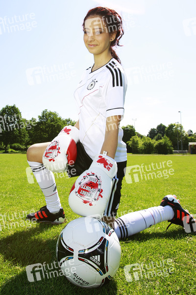 SOLsnap Cover-Model Juni 2012, Zuebeyde, Fußball, Fußballspielerin, Trikot, Ball, Boxhanschuhe
