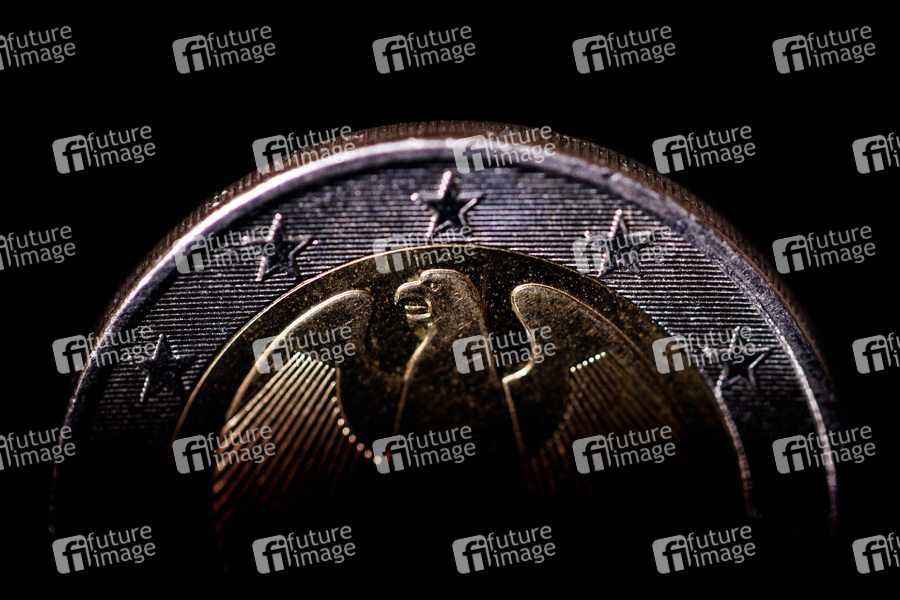 Eine 2-Euro-Münze im Lichteinfall.