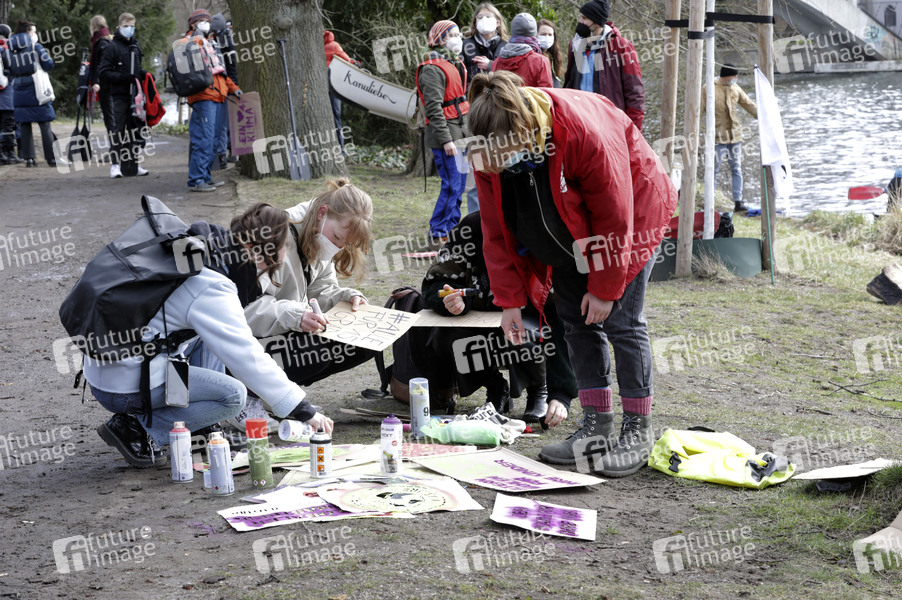 Am Freitag finden mehrere Demonstrationen zum globalen Klimastreik von Fridays for Future in Berlin statt. Unter dem Motto #AlleFür1Komma5 startet eine Bootsdemo auf der Spree von der Insel der Jugend zur Oberbaumbrücke. Berlin, 19.03.2021
