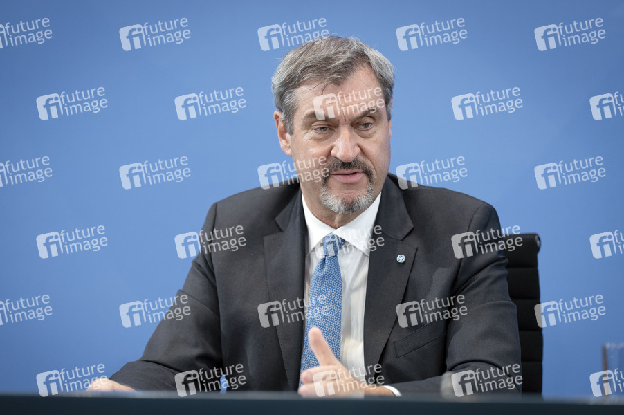 Markus Söder bei einer Pressekonferenz nach der Sitzung des Koalitionsausschusses von Union und SPD im Kanzleramt. Berlin, 09.10.2025