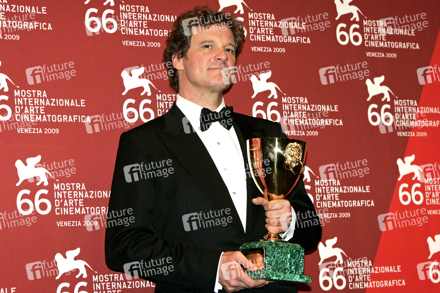 Colin Firth mit dem Coppa Volpi für den besten Darsteller in 'A Single Man' beim Photocall mit den Preisträgern auf der Biennale di Venezia 2009 / 66. Internationale Filmfestspiele von Venedig im Palazzo del Casino. Venedig, 12.09.2009