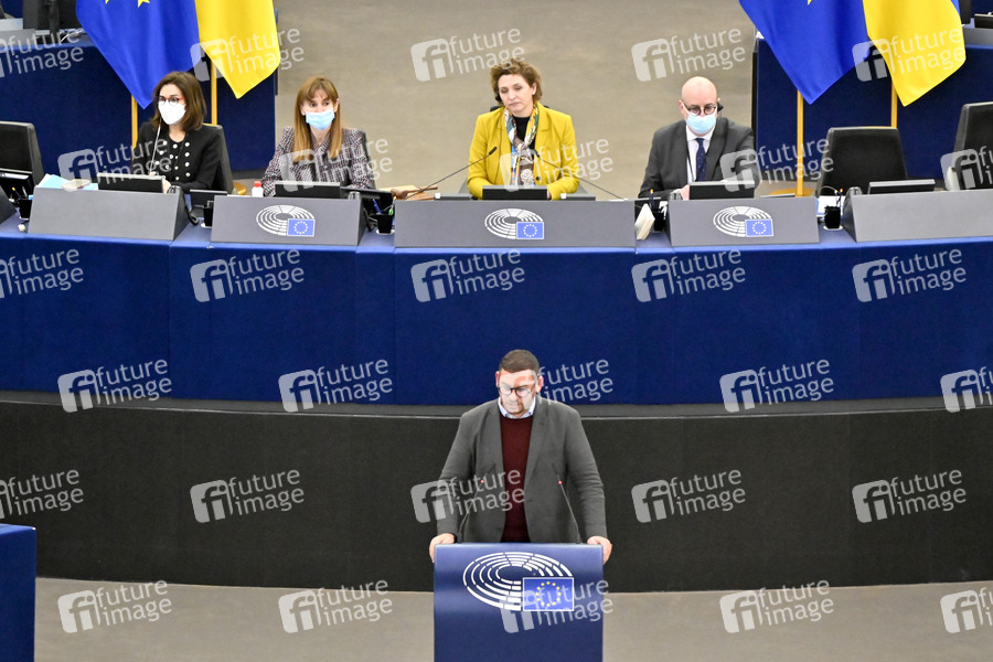 Cyrus Engerer bei einer Plenartagung zur Überarbeitung der Marktstabilitätsreserve für den EU-Emissionshandel im Plenarsaal des Europäischen Parlaments. Straßburg, 04.04.2022