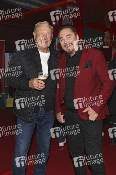 Eduard Geyer und Uwe Herrmann bei der Premiere des 28. Dresdner Weihnachts-Circus an der Washingtonstraße. Dresden, 12.12.2025