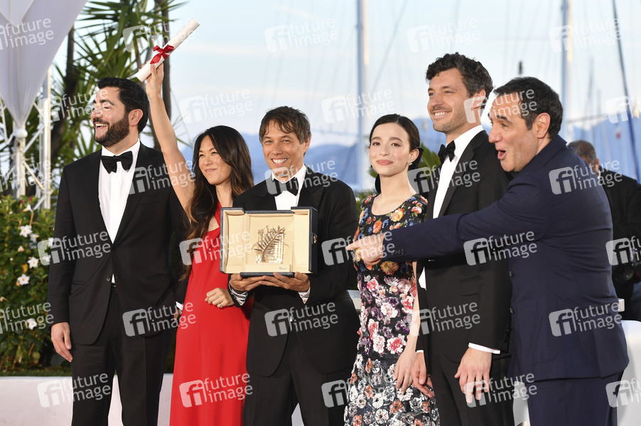 Vache Tovmasyan, Samantha Quan, Sean Baker, Mikey Madison, Alex Coco und Karren Karagulian mit der Goldenen Palme gür den besten Fim 'Anora' beim Photocall mit den Preisträgern auf dem Festival de Cannes 2024 / 77. Internationale Filmfestspiele von Cannes am Palais des Festivals. Cannes, 25.05.2024